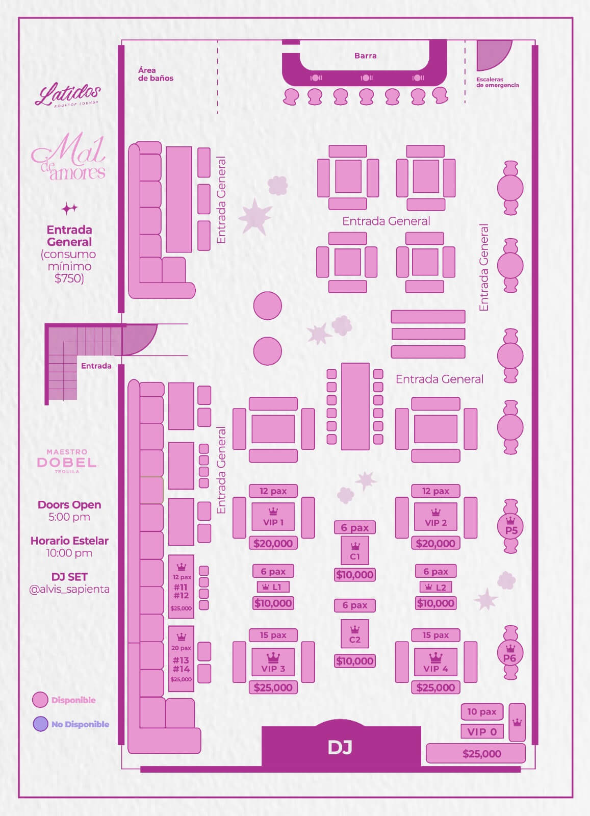 All tables have maximum number of guests, if the amount of guests that arrive surpasses the amount of maximum guests at the booked table, the extra guests will need to take a seat at another location and cover the minimum consumption of that table.